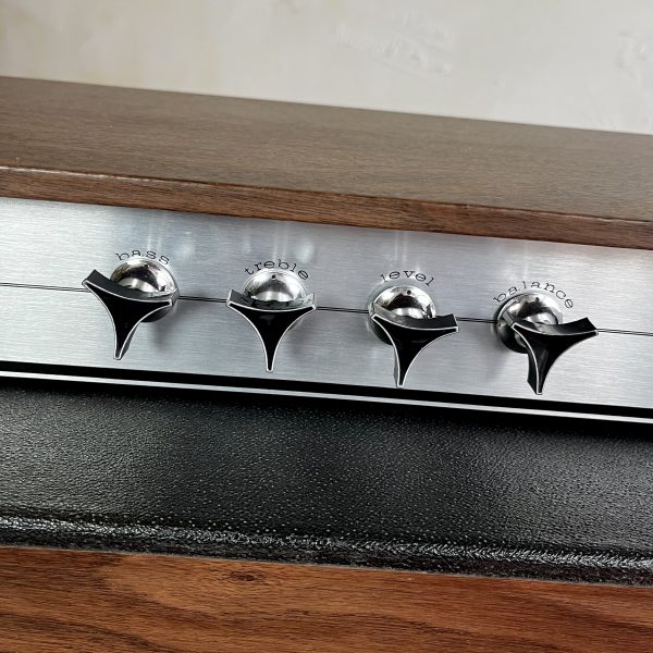 This Electrohome console unit is truly a unicorn piece featuring a fold-up turntable and stacking tuck-away speakers. It got a total overhaul- turntable rebuild, amplifier deoxidation, cosmetic restoration, and speaker cleaning. It’s a great compact size for smaller spaces, but the sound is nothing short of awesome!